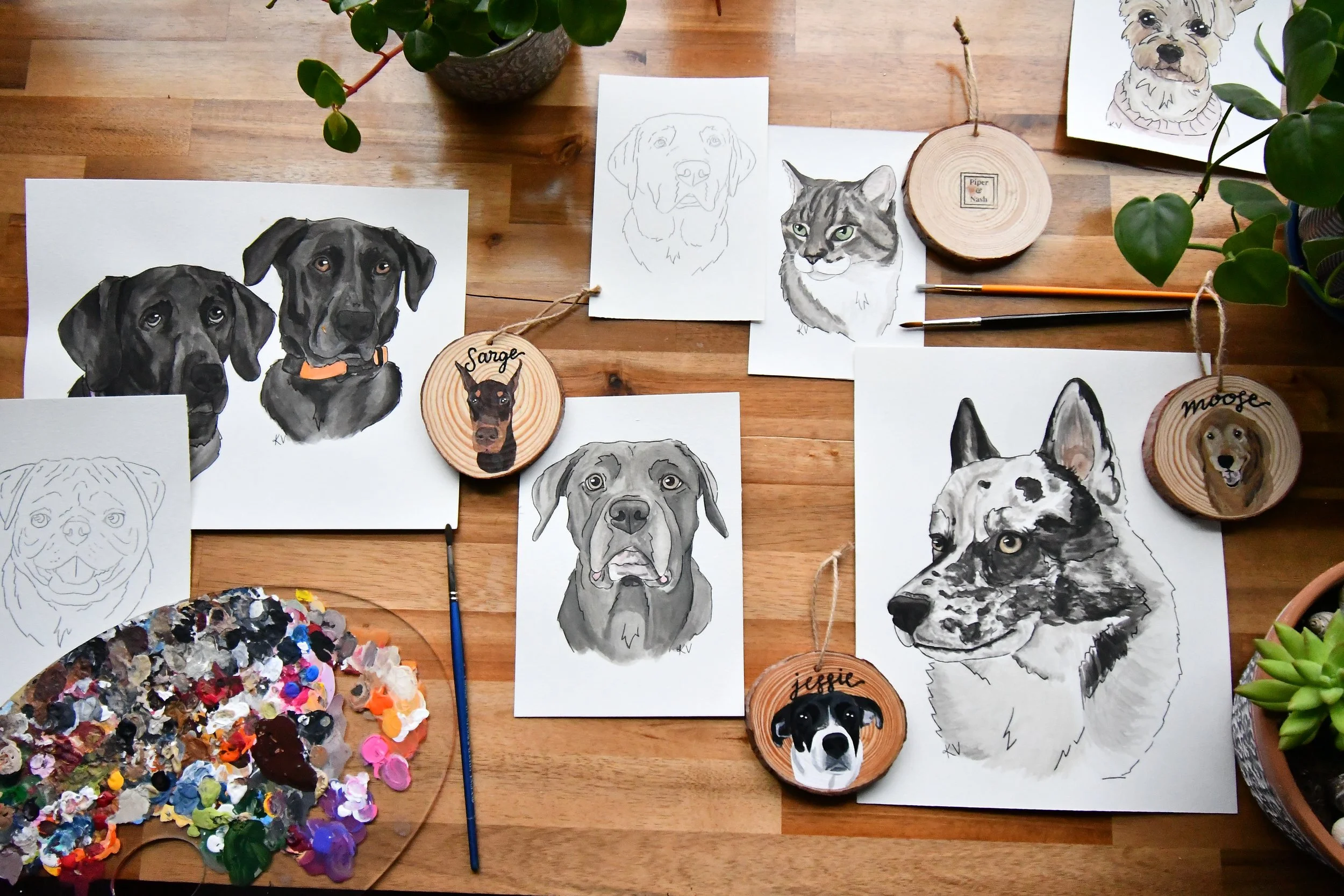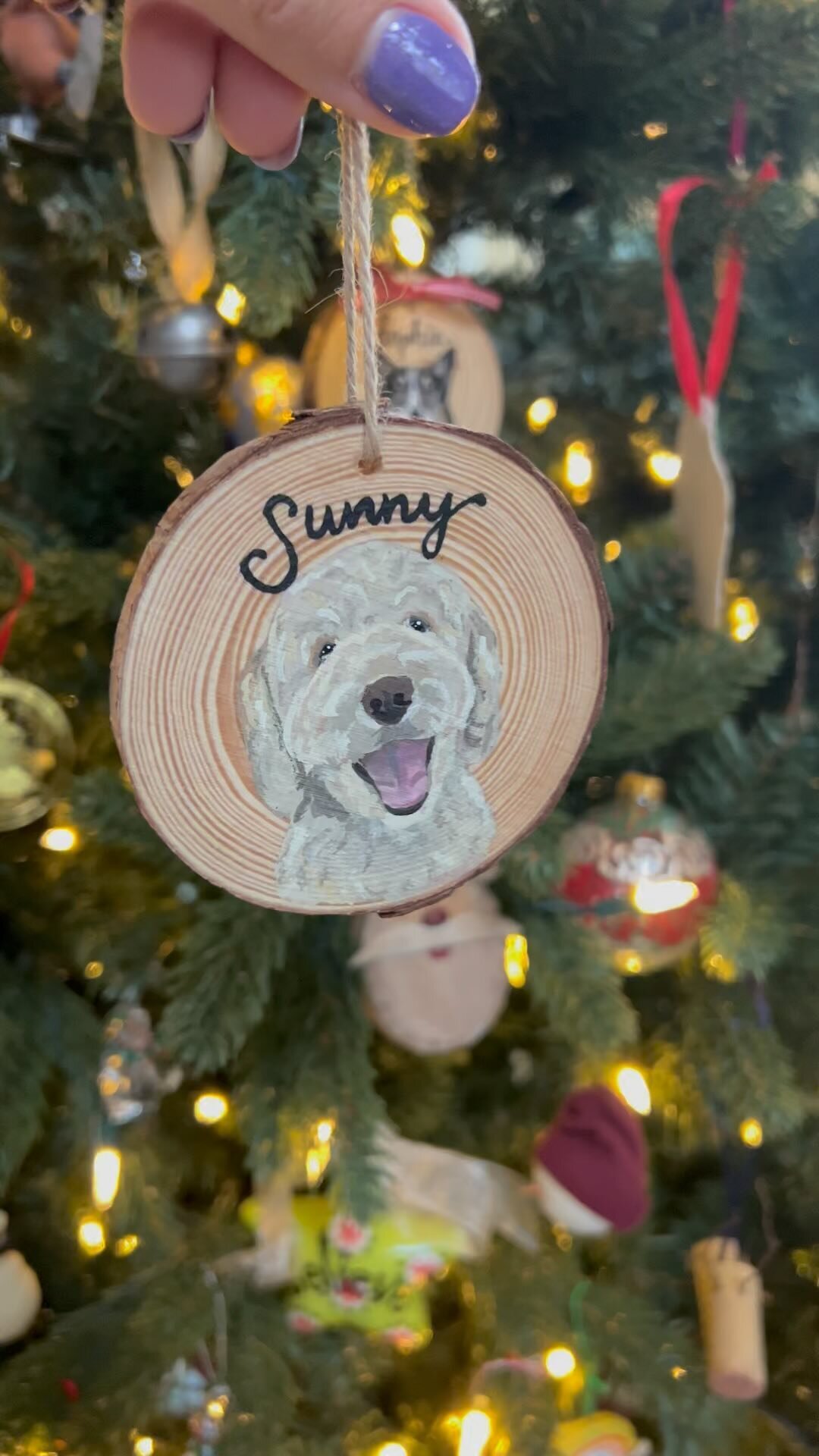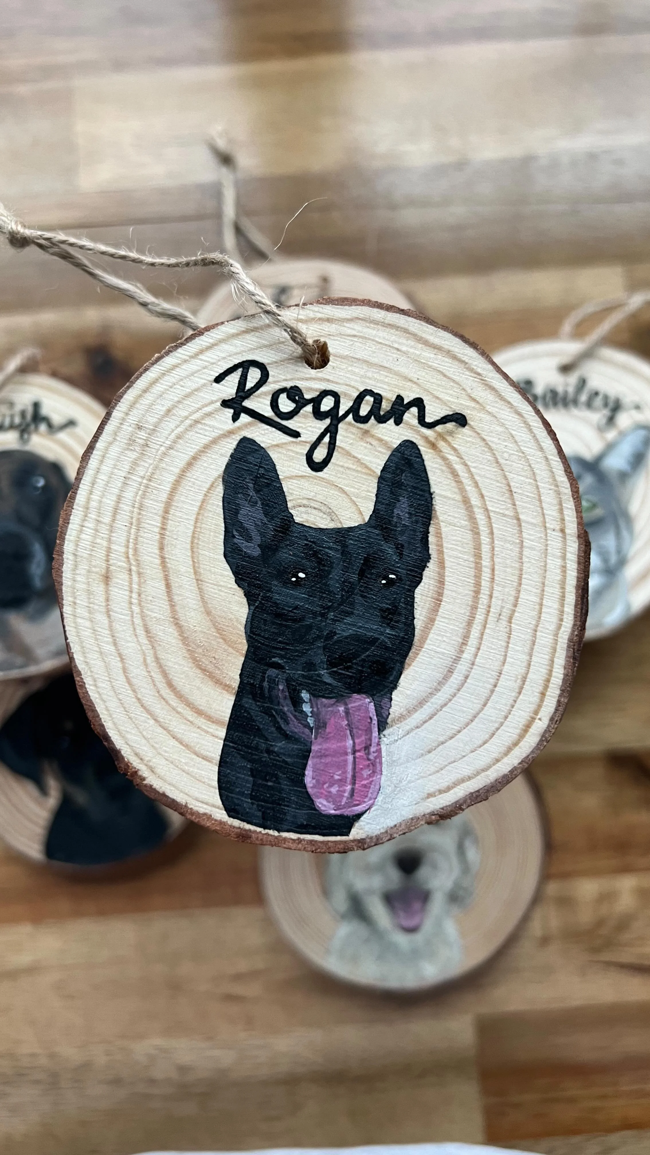 Hand Painted Watercolor, Acrylic, or Wooden Ornaments portraits of your furry friend